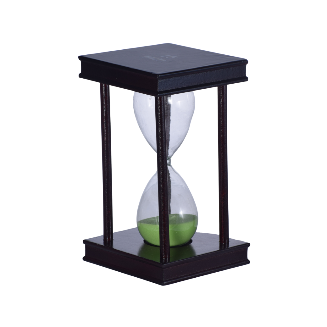 Dale un toque de elegancia y sofisticación a tu espacio con este reloj de arena decorativo de diseño clásico. Su estructura de madera oscura y su llamativa arena verde lo convierten en un accesorio ideal para el hogar, la oficina o espacios de relajación.