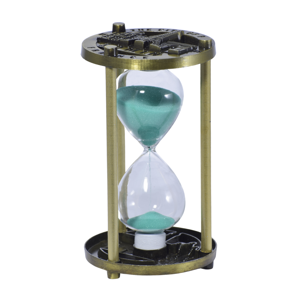 Este reloj de arena decorativo es una pieza inspirada en la icónica ciudad de París. Su estructura metálica en tono dorado con arena turquesa, aporta un estilo vintage y sofisticado.